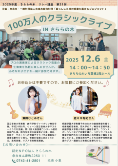 更新情報リレー講座《第21回》 12/6(土)「100万人のクラシックライブINきららの木」開催のお知らせ
