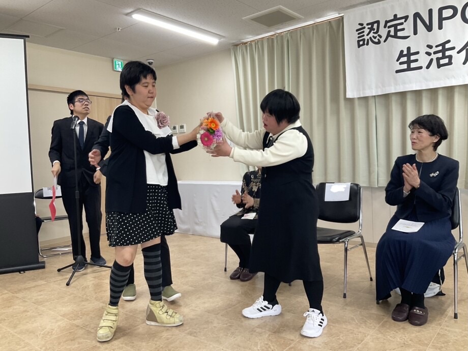 先輩から、みんなで働いたお金で買った花と、お祝いのメッセージ、そして「世界に一つだけの花」を全員で贈りました🎶