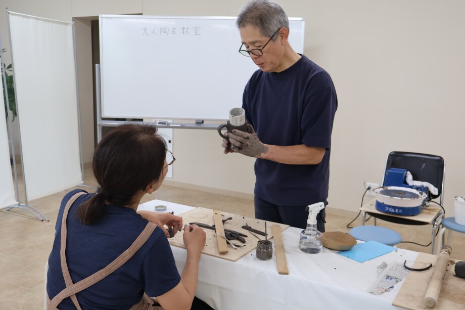 大人陶芸教室では、和気あいあいとした雰囲気の中、皆さん真剣な表情で陶芸に挑戦!