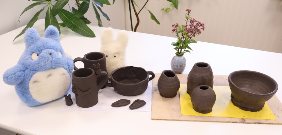 「トトロ」をモチーフとした可愛いコップ、フラワーアレンジメント用の花器、フジバカマを生けるのに似合う花器など、それぞれが思い思いの作品づくりに取り組みました。