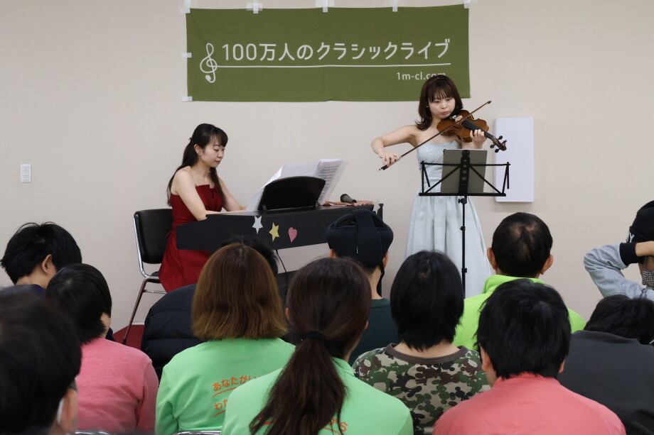 ブラームスやチャイコフスキーのクラシック音楽と、ベートーヴェンの第九やクリスマスソングなど季節を感じる音楽をヴァイオリンとピアノの演奏で聴かせていただきました。