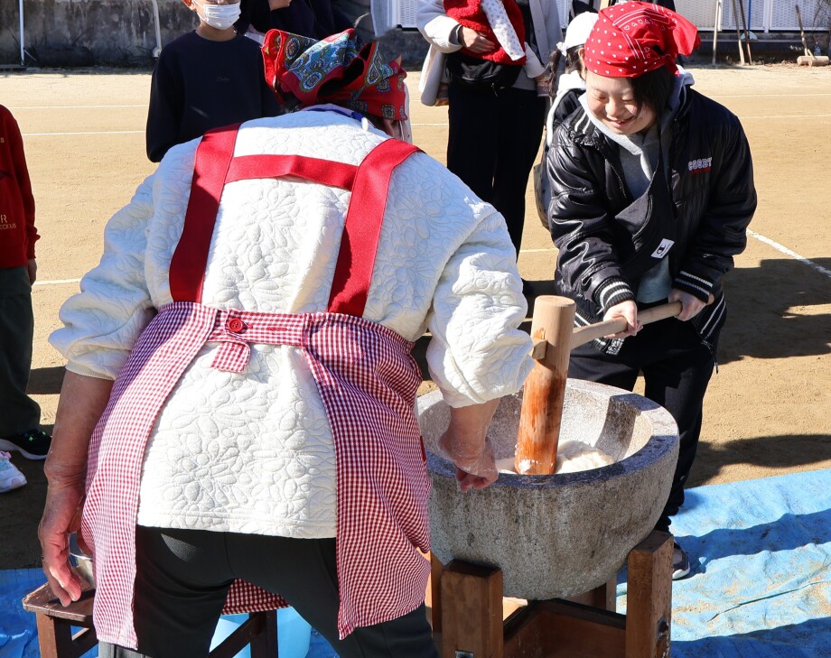 地域の皆さんと一緒に楽しく餅つきや丸める体験をさせていただきました。
