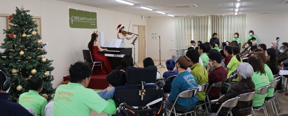 100万人のクラシックライブINきららの木(主催:奈良市・一般財団法人奈良市総合財団「暮らしに芸術の感動を届けるプロジェクト」)を当法人本部2階ホールにて行いました。地域住民の皆さんや、当法人関係者など総勢80名の参加となりました。