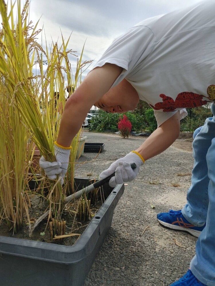 暑く厳しい夏が終わり、最高の季節を迎え華で厳るでは初挑戦の稲刈りを行いました。