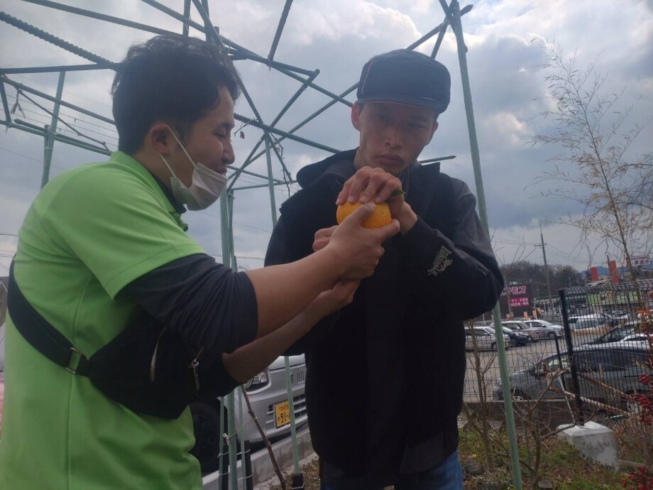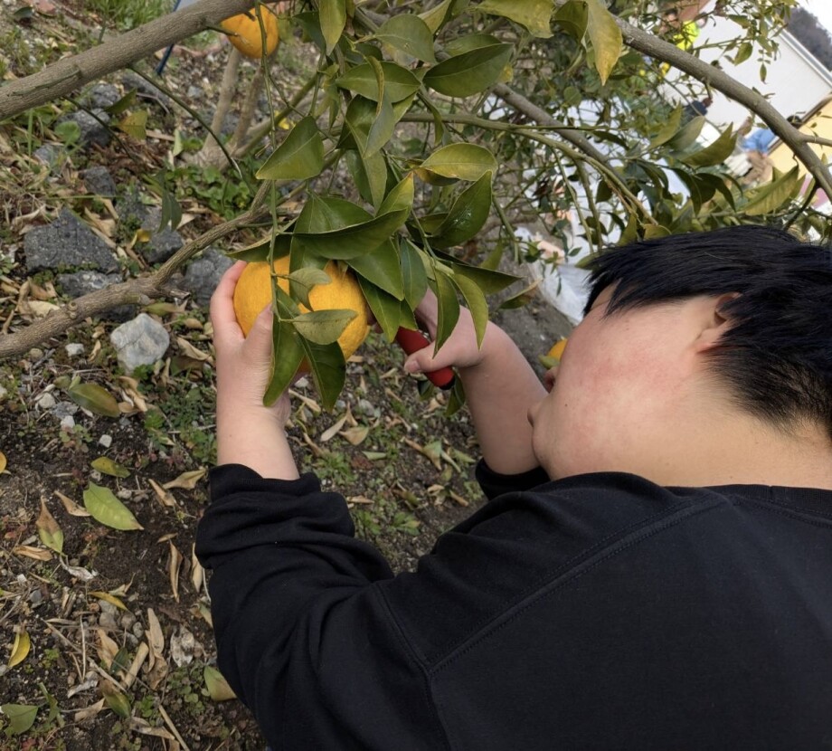 2026.03.24 畑 春の香り 冬の厳しい寒さに耐え、綺麗に大きく育った甘夏を、いろ葉のなかまと一緒に収穫しました。 甘酸っぱい春の香りを味わいます。 大いなる生駒山を背に、美しい日本の四季を楽しんでいきます。