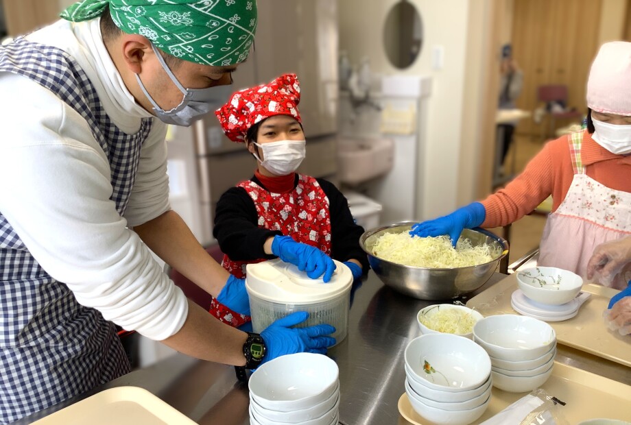午前中はみんなで会食の準備をしました。