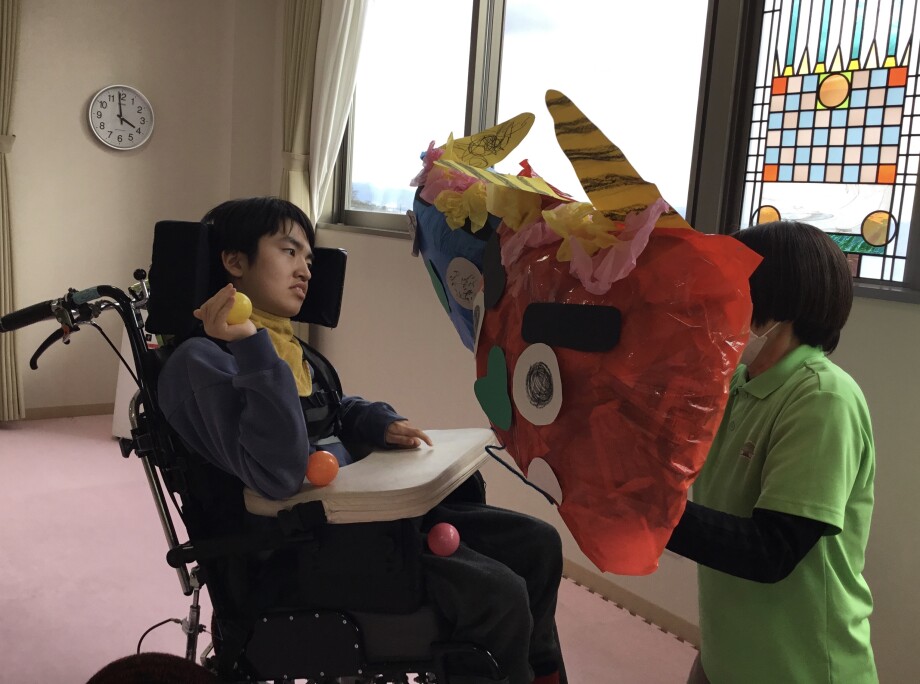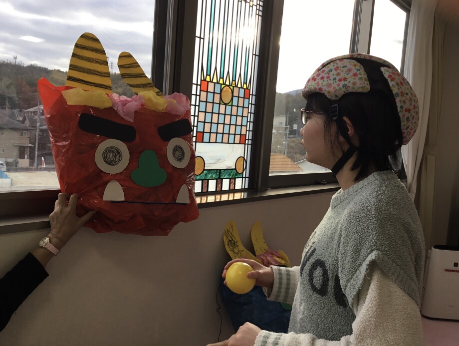 豆の代わりにボールを投げて楽しく鬼たいじ(^^)