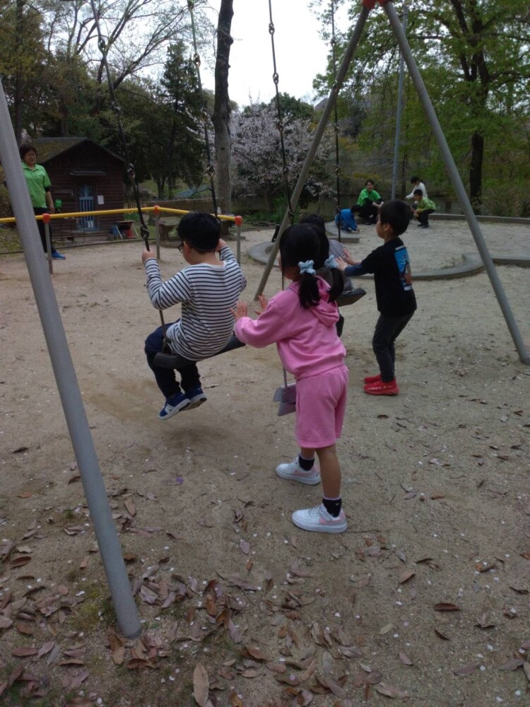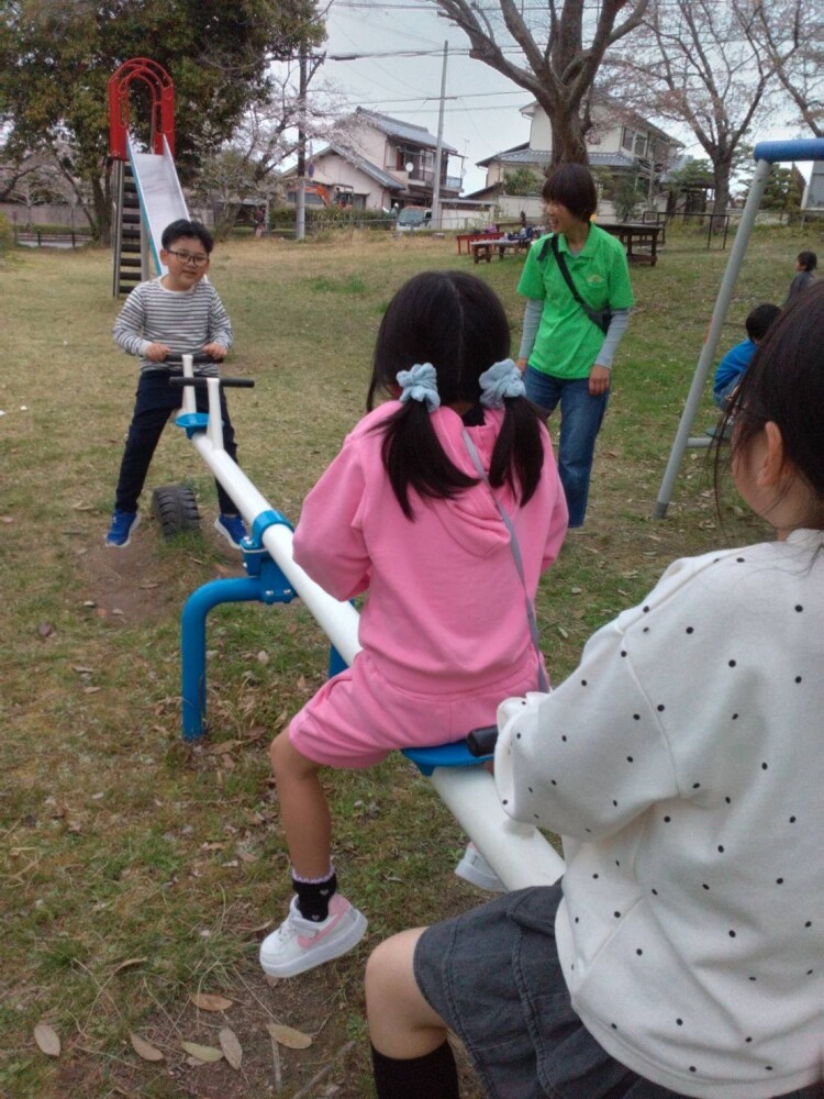 その後、あひる公園に行くと、シーソーや滑り台、ブランコなどで存分に遊んだ子どもたちです。