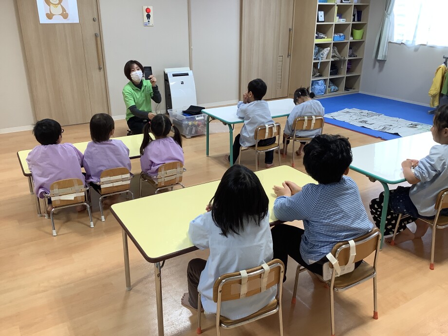 硯や筆、墨汁を見せると「何だろう?」という表情の子どもたち。