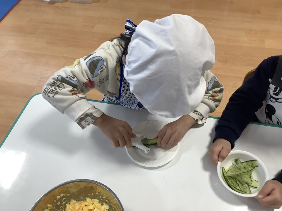 友だちや職員と「おいしいね」と言い合いながら食べました。