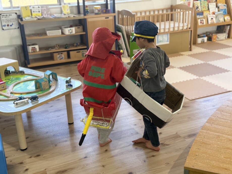 子どもたちは荷物をおろすなり、すぐに遊び始めました。